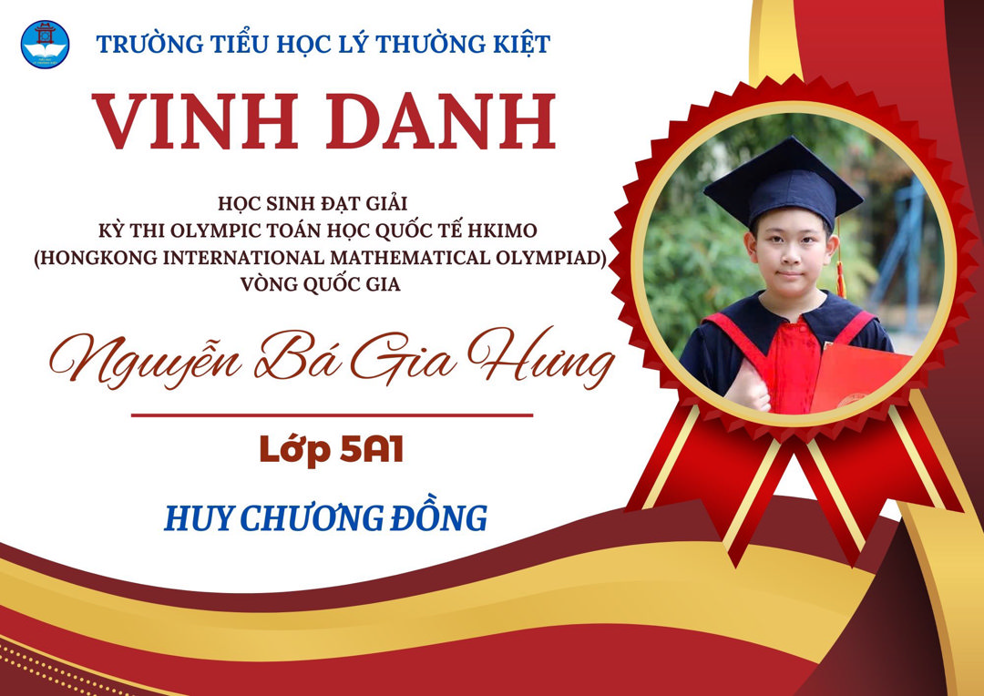 Trường Tiểu học Lý Thường Kiệt tự hào chúc mừng 4 học sinh đã xuất sắc giành thành tích cao tại kỳ thi Hong Kong International Mathematical Olympiad (HKIMO) 2025 – một sân chơi trí tuệ uy tín mang tầm quốc tế: